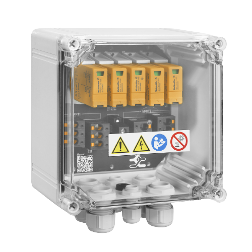 Der Weidmüller GAK ÜSS Typ I/II 2 MPPT CG ist ein innovativer DC-Generatoranschlusskasten, der speziell für private und gewerbliche Photovoltaikanlagen entwickelt wurde. Er bietet fortschrittlichen Überspannungsschutz für zwei MPP-Tracker und sorgt für maximale Sicherheit und Zuverlässigkeit bei der Energieübertragung.